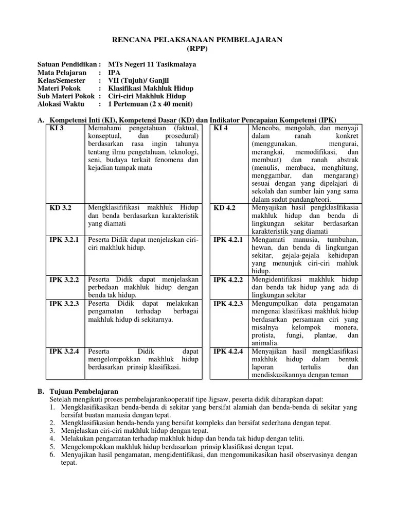 Rpp Ciri-Ciri Makhluk Hidup Kelas 7 - Kd 3 2 Kls 7 Pdf - Rencana pelaksanaan pembelajaran · 3.